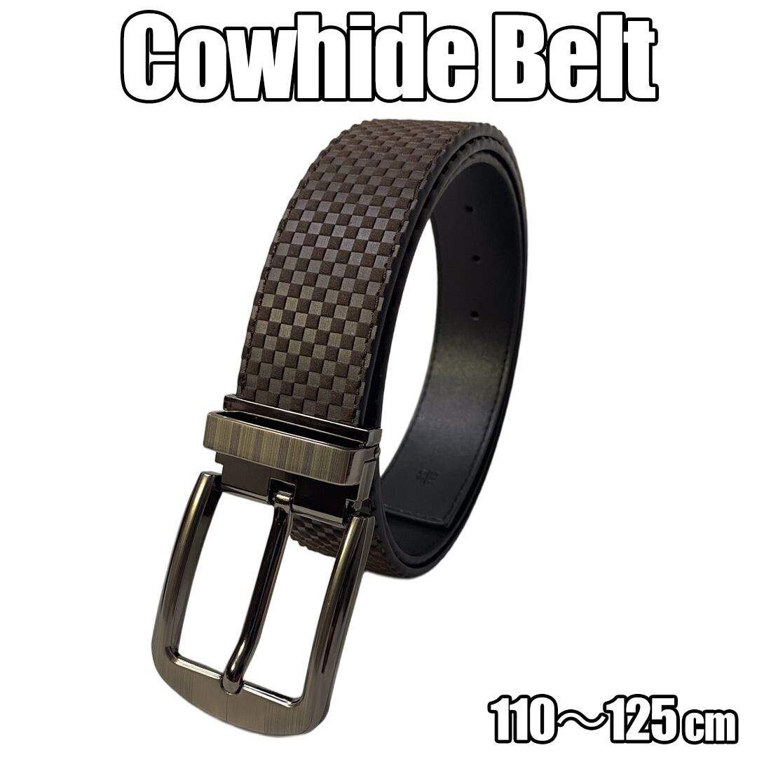 ■新品■ 牛革 レザーベルト タイヤ柄 格子柄 メンズ レディース バックル交換用ベルト 大きいサイズ対応 約120㎝ 茶